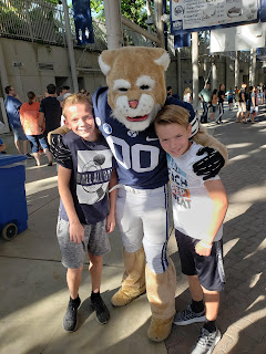 The twins went to BYU sports camp for four days! Jackson did football camp and Josh did basketball camp. We got there early Monday morning to get Jack checked in and ran into Cosmo!